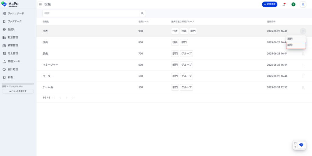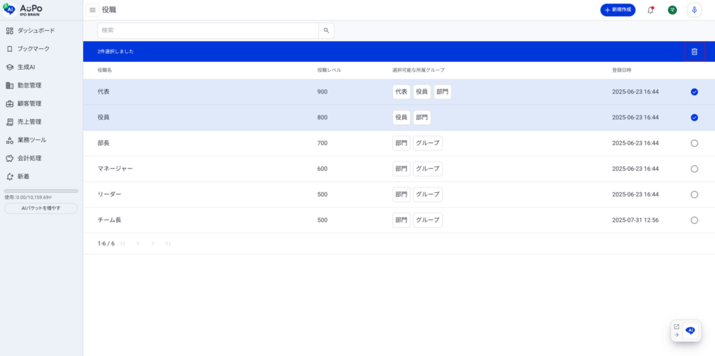 対象の役職情報が削除されます。