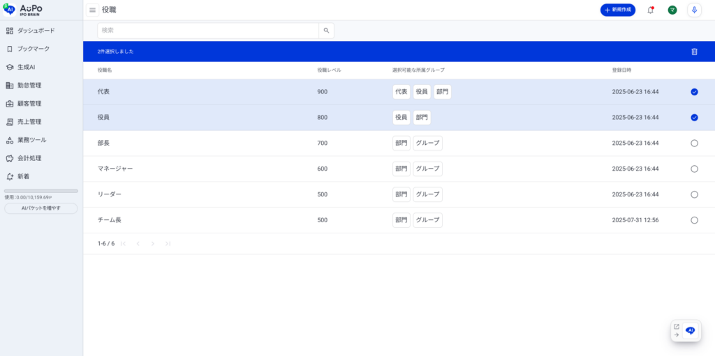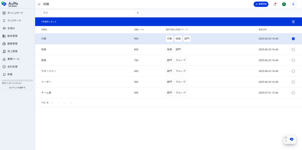 対象の役職情報が選択されます。