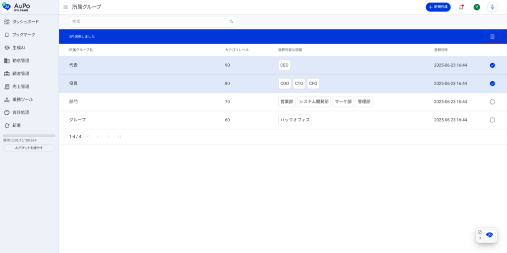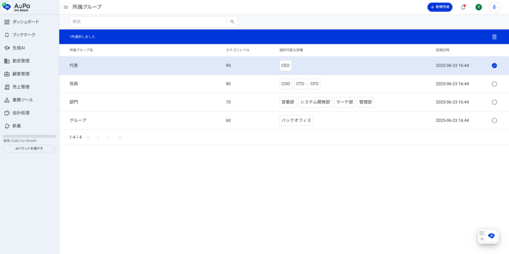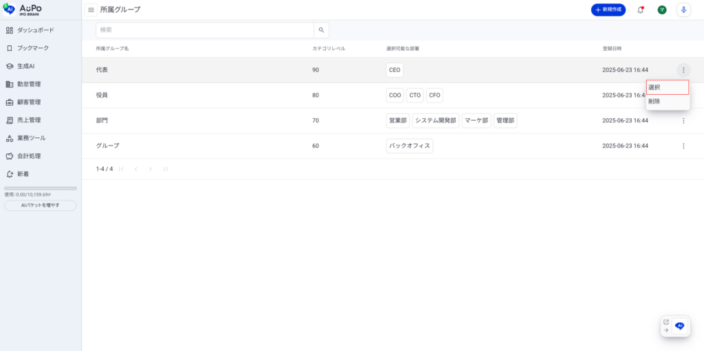 対象の所属グループ情報が選択されます。