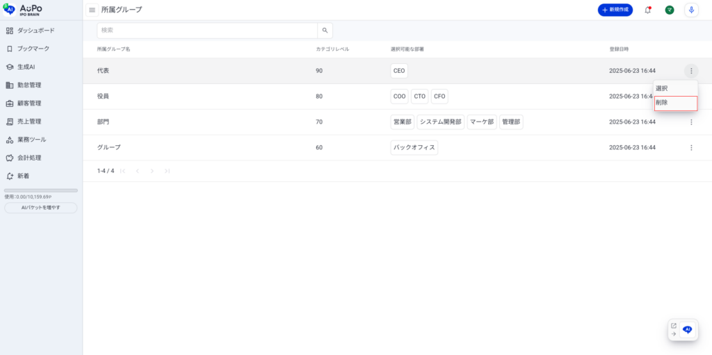 対象の所属グループ情報が削除されます。