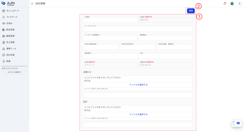 ・企業ID(変更不可):自動採番された企業固有のIDです。編集はできません。