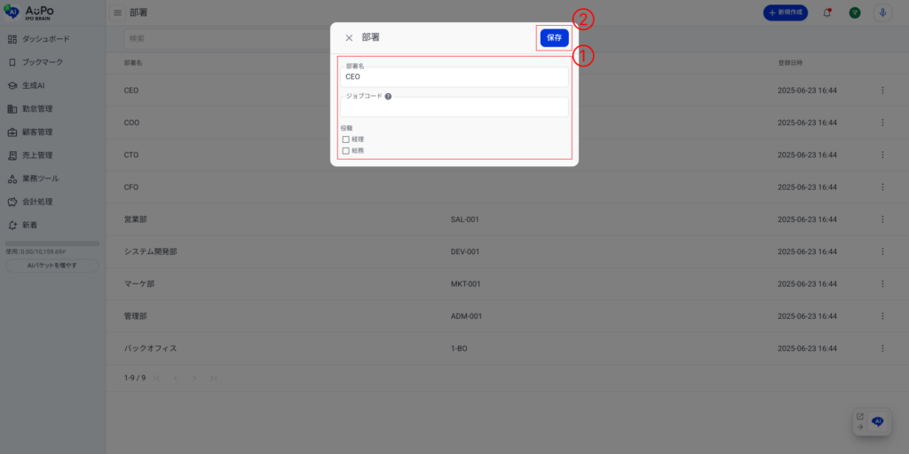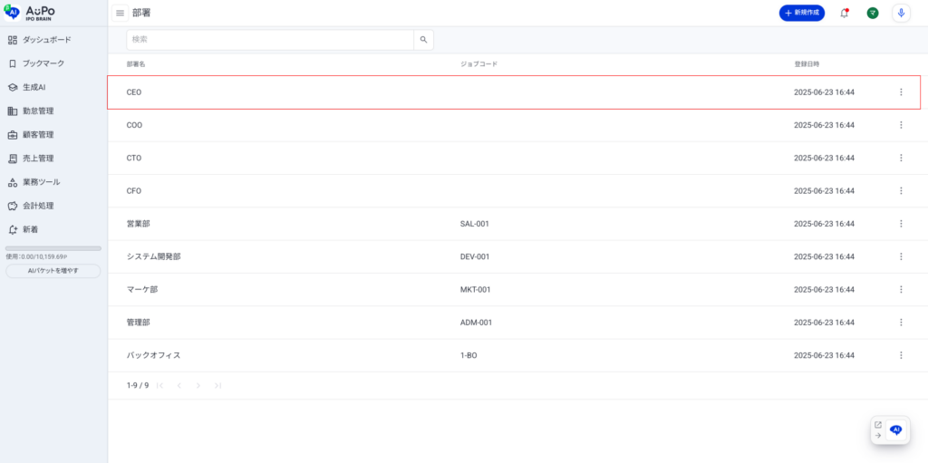 部署情報の表示/登録/編集について説明します。